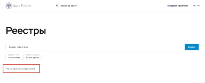 Бірақ, біз бұл барлық саяхаттарды жақындатып, оларды тек сөздерге алып келгенін көрсетеміз. Тіркелген ең бірінші қызғылт сыйымдама, ол Банк Ресей және басқа қаржы қызметтері саласындағы регуляциялау органдарынан лицензиясыздық. Ресей рынға брокерлік қызметтерді ұсыну үшін тексерілген лицензияға ие болуы тиіс, және "Capital Millennium" қолданбайды.
