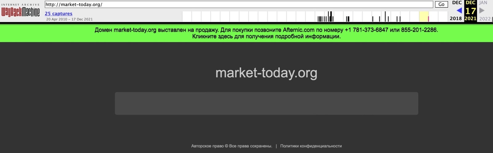 Бірақ бір "амма" бар. Осы доменді көп уақытты сатып алдылар. Негізгіден, 2021 жылдың қарашасында ол сатылмаған. Оның туралы бірінші аталулар тек бірнеше ай бұрын веб-архивінде шықты.