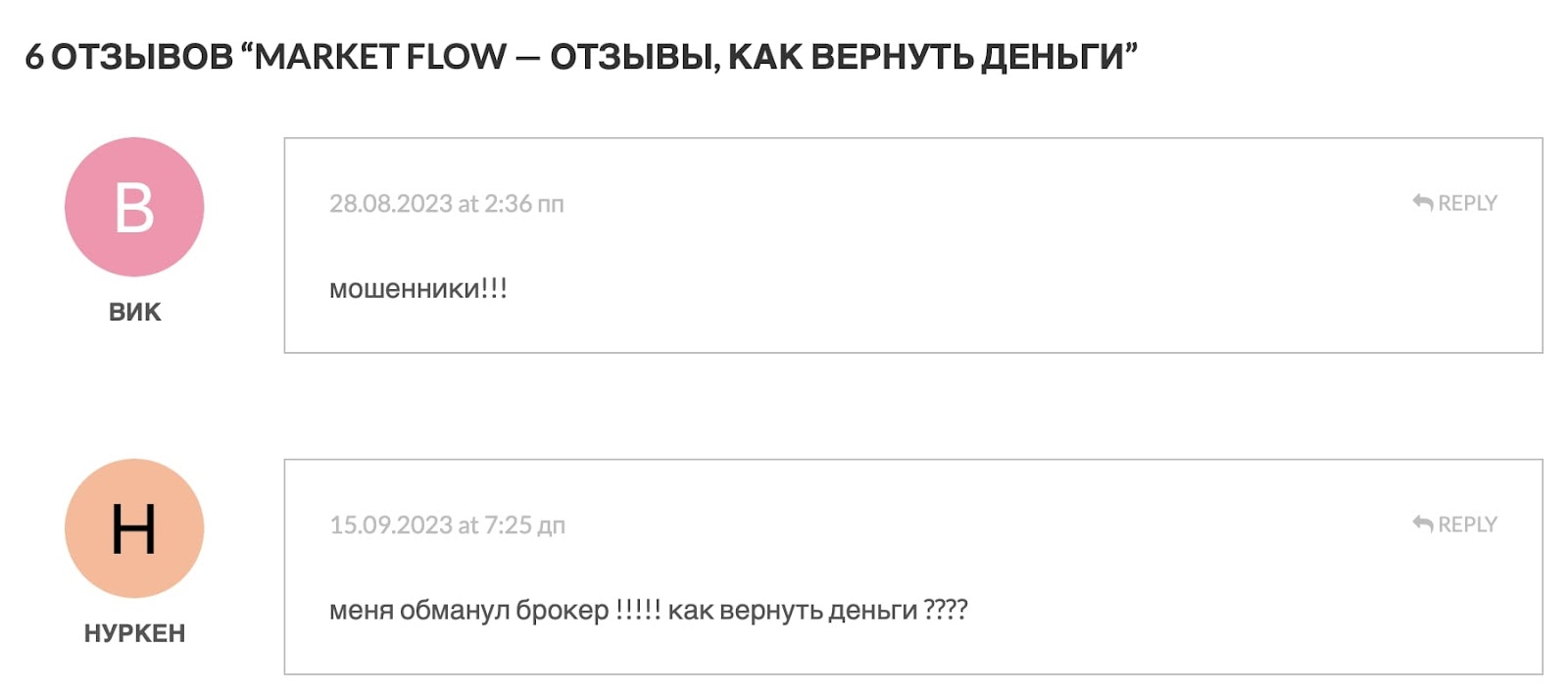 Market Flow бірінші дайындаманы жасайды. Жасаушылар пайдаланушыларды оларға көбірек сомма бергеніне сенімді болуын қалайды, жеңіл заработокпен үміткерлікті. Олар үлесі, прибыльді сауда имитациялау жатады, сонда трейдерді "жасар" тарифтік жоспарға өтуге тәуекелдейді. Олай болса, жалбарыштылар туындау кабинетіге кіруді блоклауды және жақтығыз қосылмасымен бірге жұмсап келе алады. Оны содан кейін оларға қалай дейін байланыс құрудың мүмкіндігі жоқ.